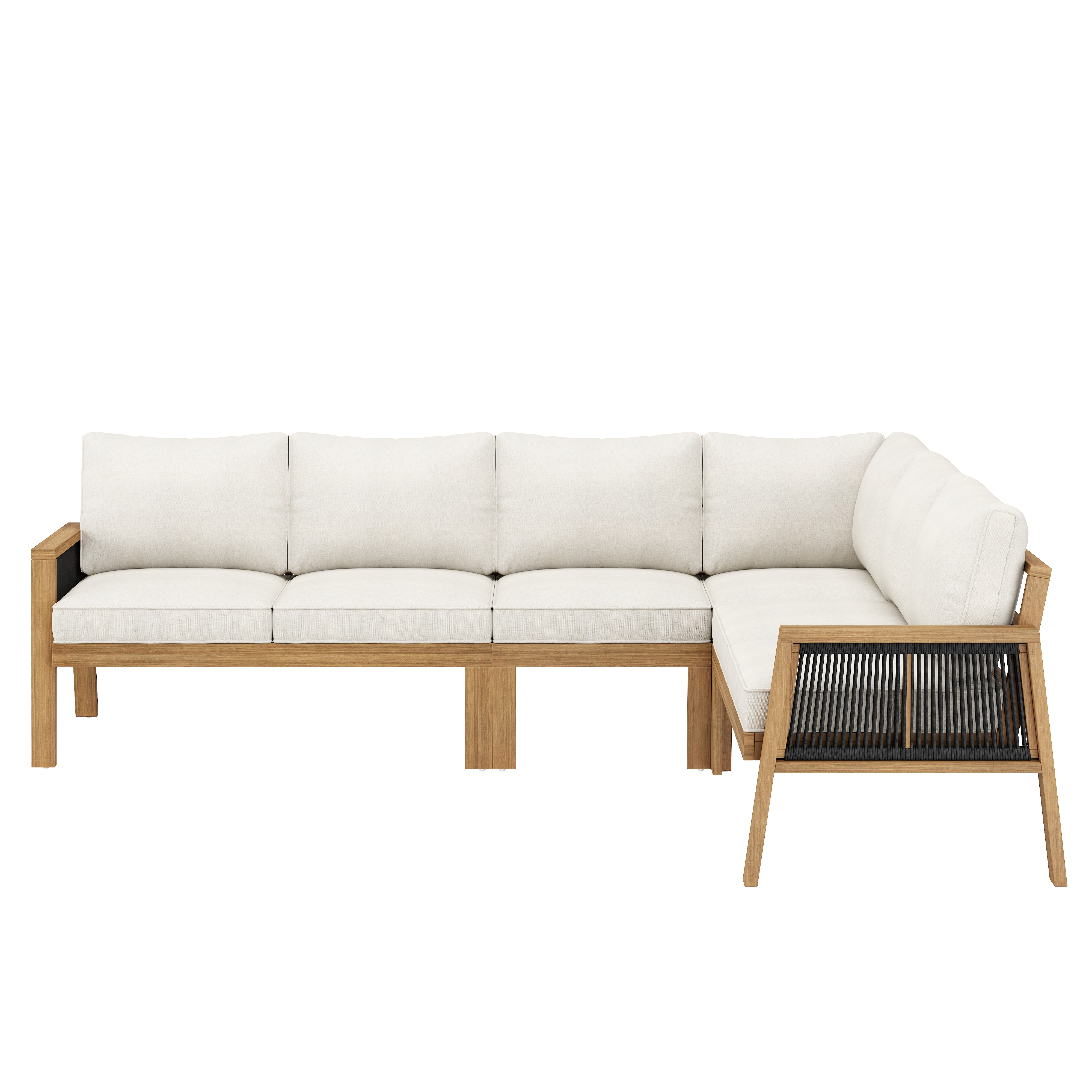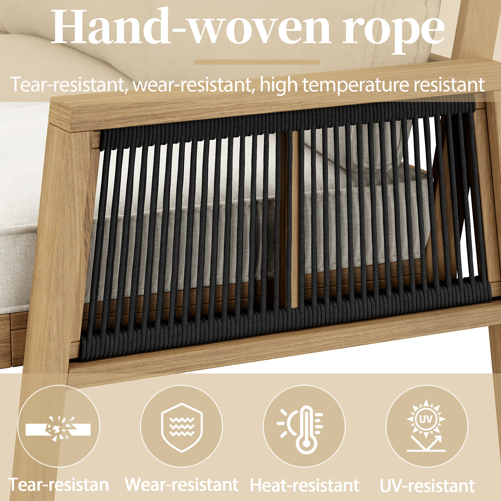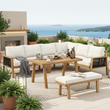 Product Name:6-7 Seater Garden Lounge & Dining Set, Acacia Wood Frame Outdoor Patio Furniture, Corner Sofa + Bench with Rope Braiding, Acacia Wood Tabletop, Includes All Chairs & Backrest Cushions, Natural+ cream