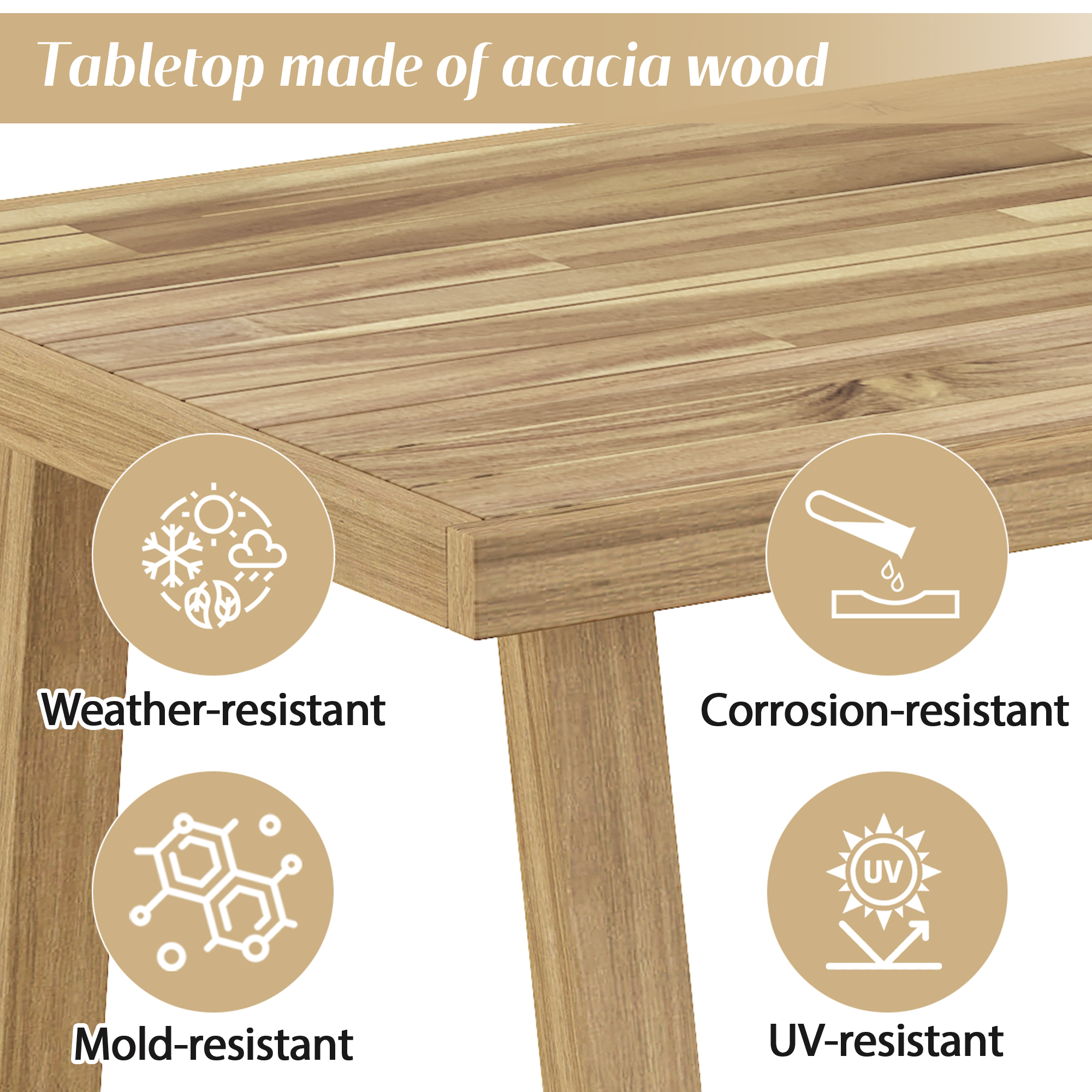 - Premium Acacia Wood Construction – Crafted from high-quality acacia wood, this set features a solid, durable build that withstands the elements. It delivers a premium, high-end look and feel, ensuring long-lasting use in your garden or patio.