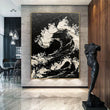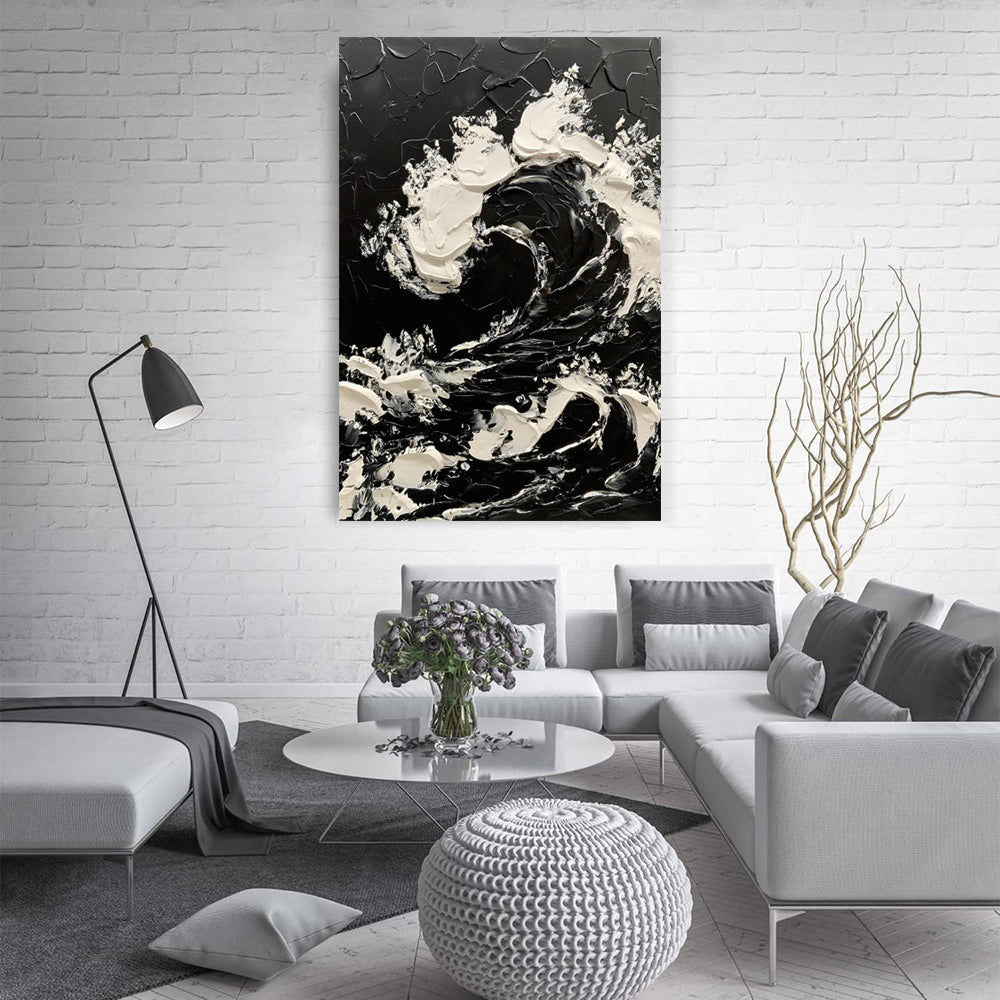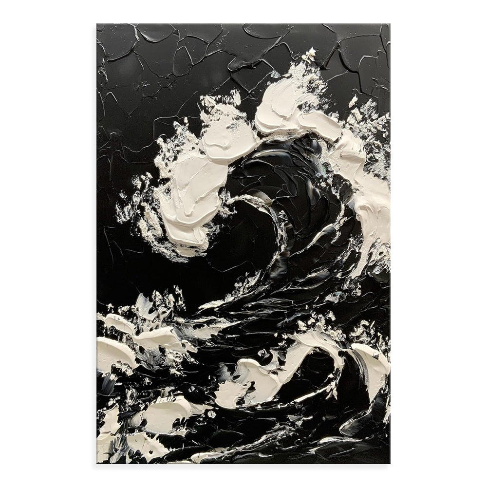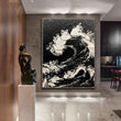 Large Size Hand-painted Black White Sea Waves