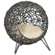 PawHut Rattan Elevated Cat chair Removable Cushion - Silver-Tone And Grey UK ONLY