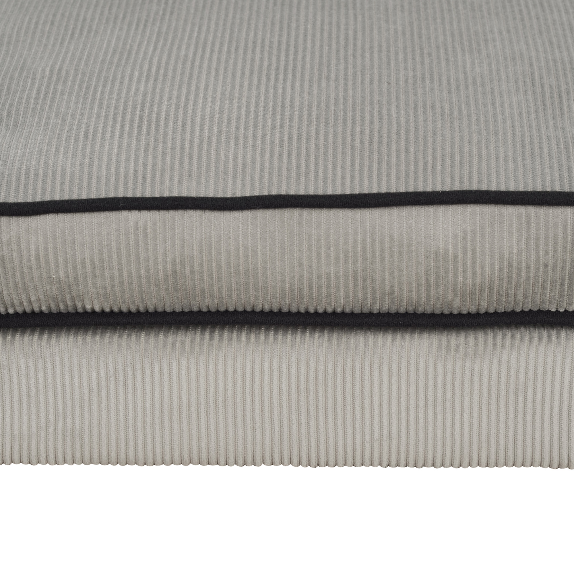 - Modern and on-trend design, with grey corduroy upholstery and black piping on the seams