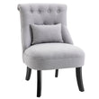 Sink into something comfortable without sacrificing on your precious home space with this accent chair, from . Linen-look fabric, the curved wooden legs and delicate button tufting on the back evokes a vintage style - a statement in any setting. Soft cushioned seat and curved backrest for comfort and support. Something different for this season and beyond.